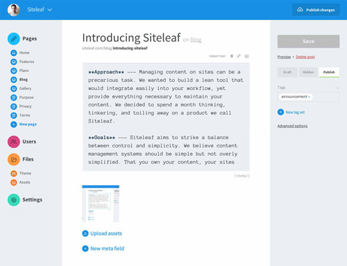Siteleaf上清爽易讀的文字。