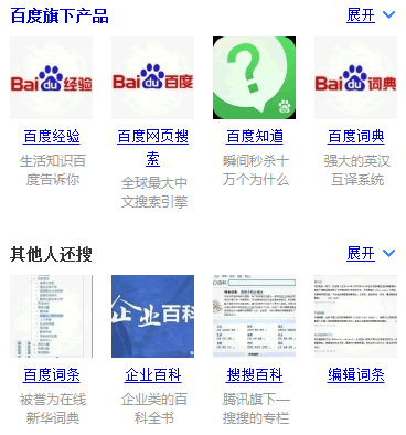 除了百度產(chǎn)品,下面還有兩個被推薦的欄目如,其他人還搜,相關(guān)網(wǎng)站。其實(shí)其他人還在搜站長都知道這是百度機(jī)器推薦的,根本不是網(wǎng)友搜索出來的,而我們需要做的能讓我們自己的詞條在網(wǎng)友搜索任何關(guān)于互聯(lián)網(wǎng)的關(guān)鍵詞都能出現(xiàn)我們的詞條在右邊的推薦欄里面。